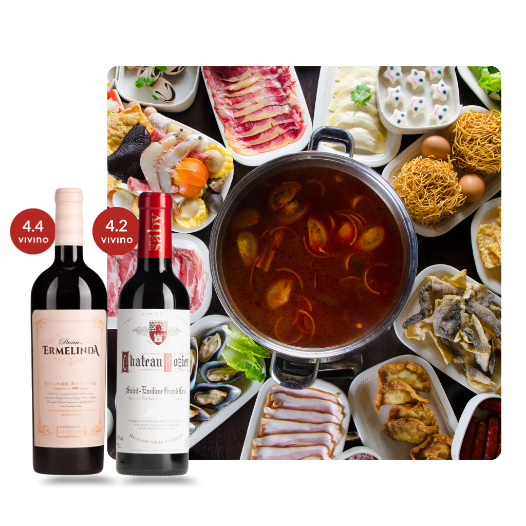 Château Rozier sits comfortably in the medium-bodied range and stays smooth enough for seafood. Casa Ermelinda brings darker fruit, spice, and a fuller body, great when the steamboat shifts towards more meats and richer dipping sauces.
